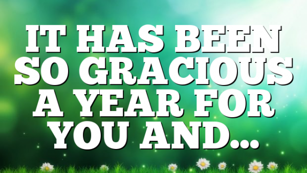 IT HAS BEEN SO GRACIOUS A YEAR FOR YOU AND ME AND USHERING US INTO ANOTHER GRACIOUS YEAR…TO GOD BE ALL THE GLORY! Bless…