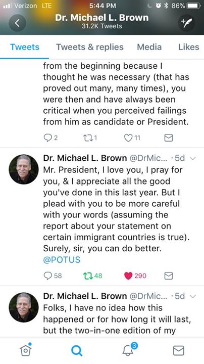 Dr. Michael Brown’s statement on President Trump