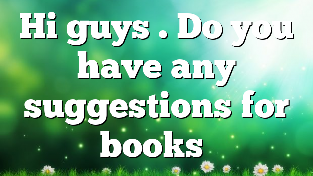 Hi guys . Do you have any suggestions for books to read over the next few weeks ????
