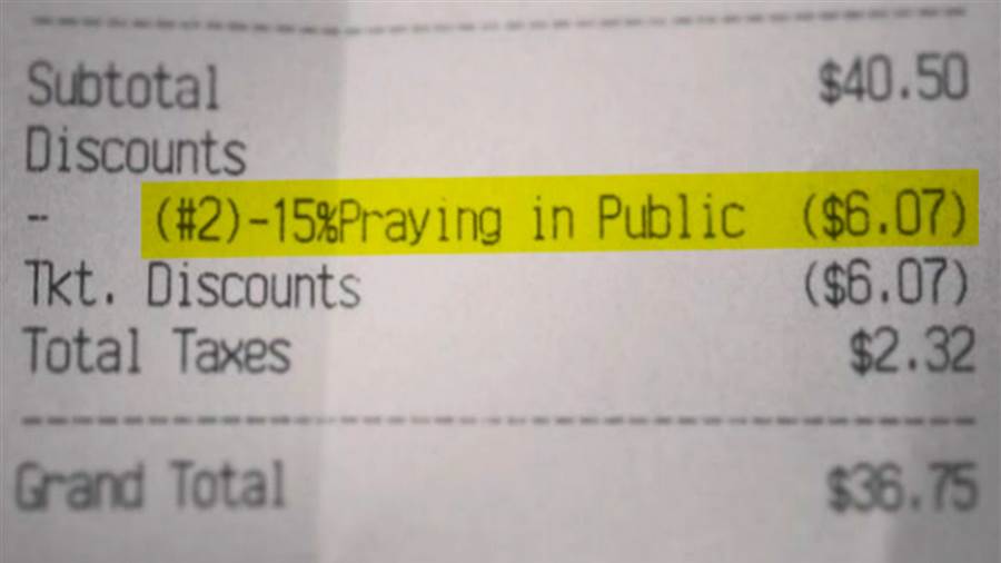 North Carolina restaurant offers a 15 % OFF for prayer