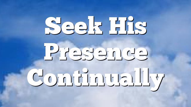 We know in one sense that the presence of the Lord is always with us. He is omnipresent, and in a deeper sense, He dwells within the believer. Seeking His presence continually must mean something more, and it does. So why and how do we seek His presence?
