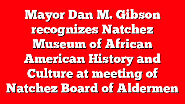 Mayor Dan M. Gibson recognizes Natchez Museum of African American History and Culture at meeting of Natchez Board of Aldermen