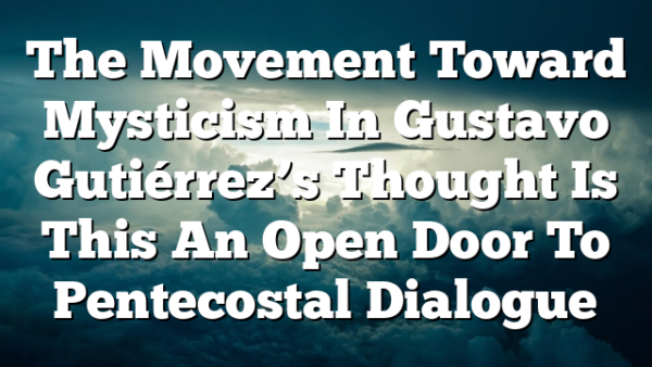 Pneuma 33 (2011) 5-24 Te Movement Toward Mysticism in Gustavo Gutiérrez’s Tought: Is Tis an Open Door to Pentecostal Dialogue? Joseph Davis Associate Professor…