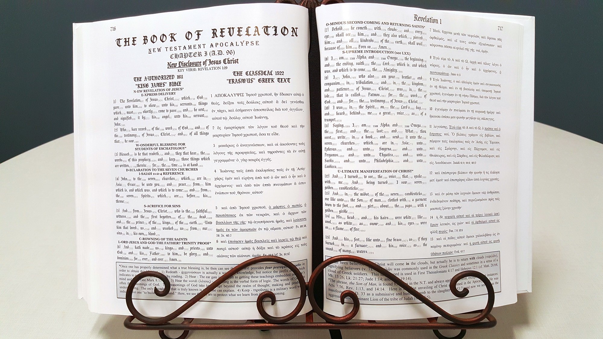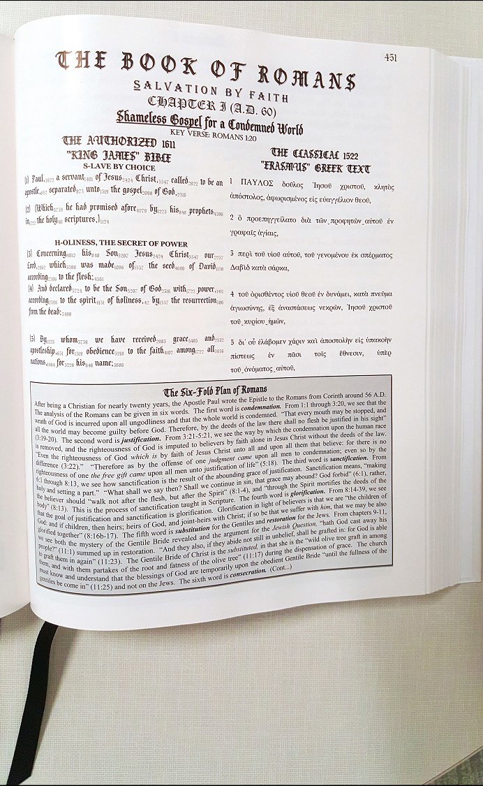 For those who already buy one and own it cheers! with a cup of coffee and enjoy study God’s Word with excitement! This is worth it! I can get my KJC 1611 Replica and study my The New Acrostic Study Bible Vol. 5 – Parallel Erasmus Greek New Testament Hardcover – September 5, 2016