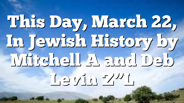 This Day, March 22, In Jewish History by Mitchell A and Deb Levin Z”L
